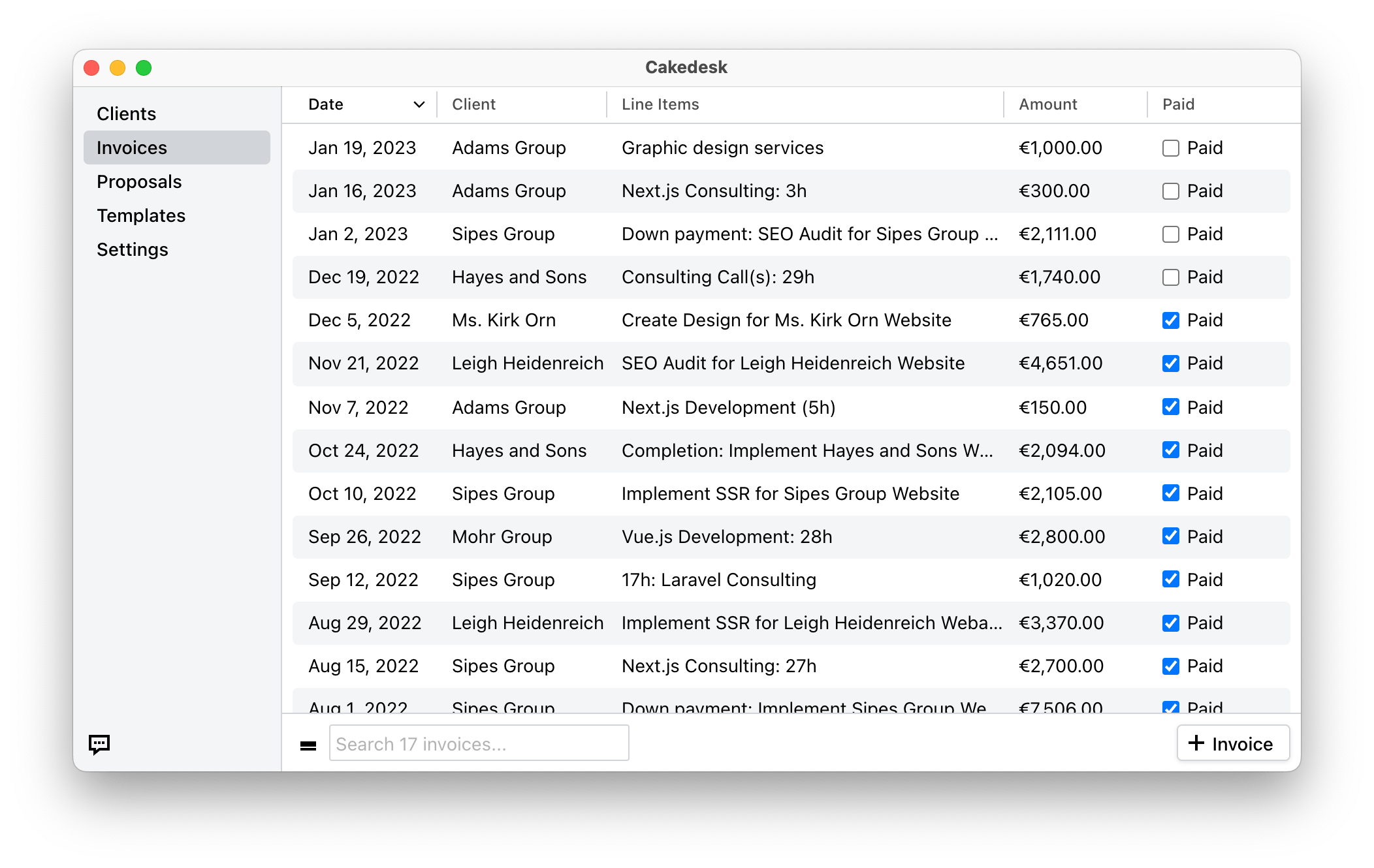 Create highly detailed proposals and invoices using nested items and rich text descriptions